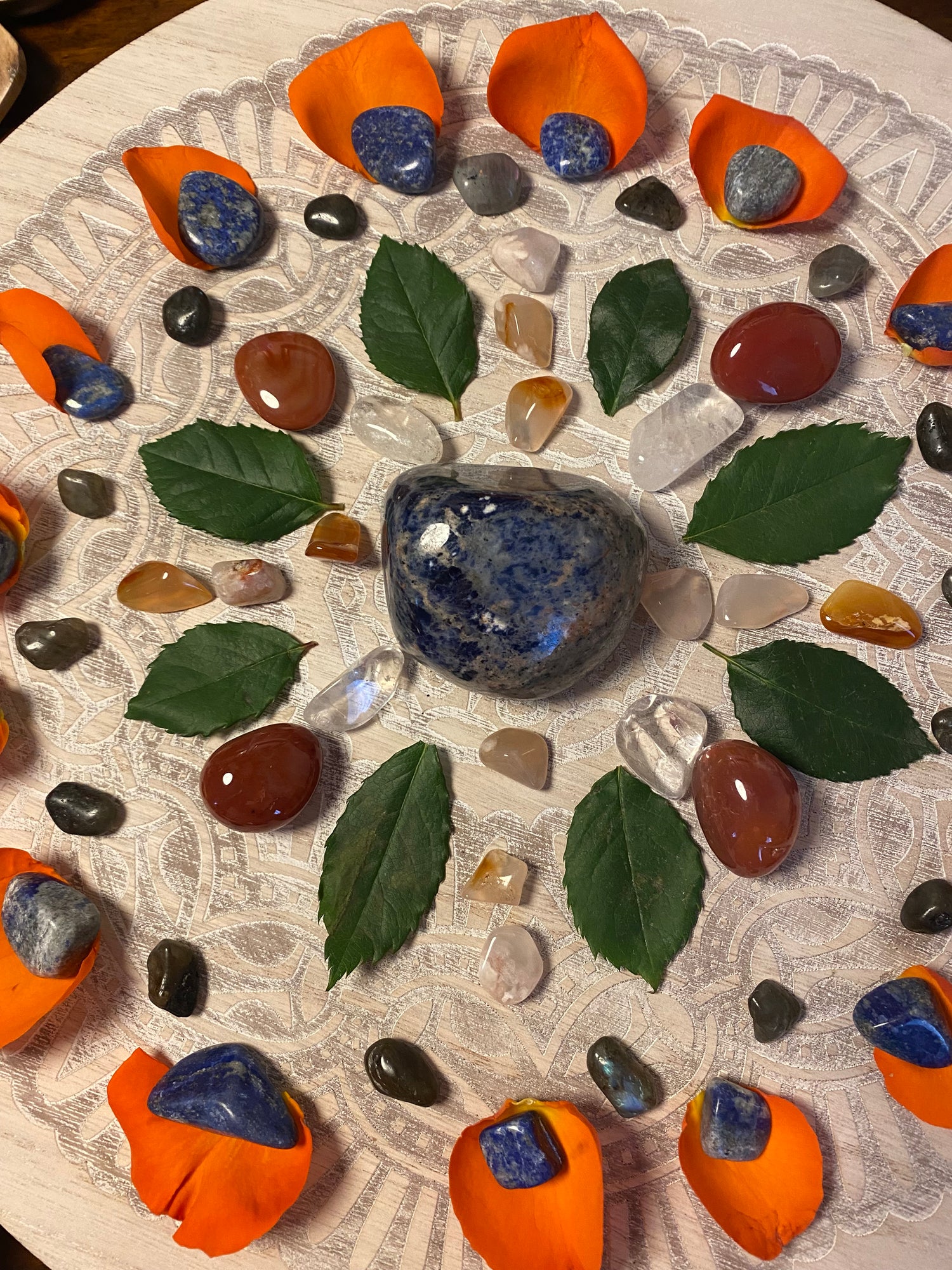 - Place the central crystal: Put the main crystal or a focal point in the center of the grid, representing your primary intention.