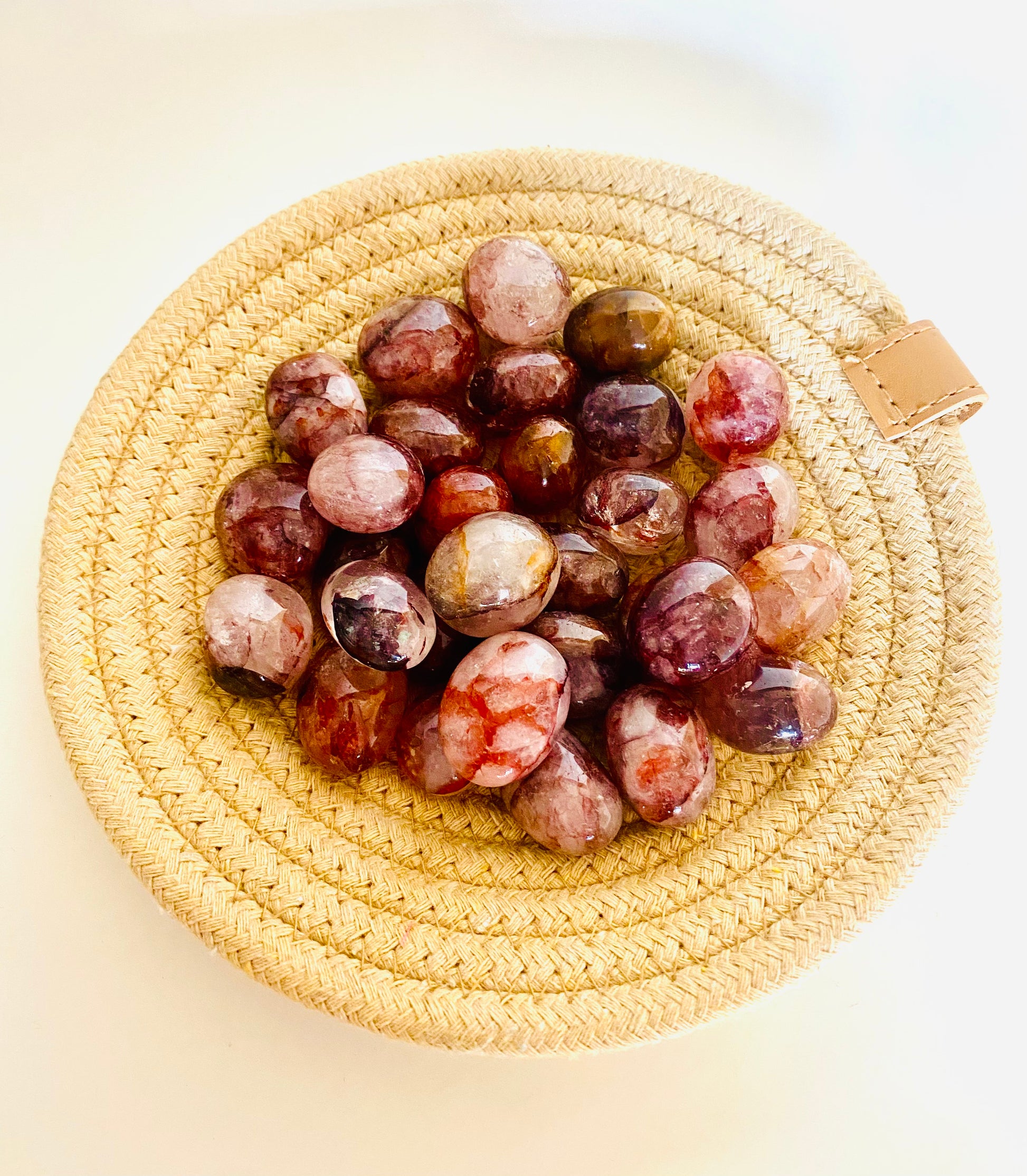 Delve into the mystique of our top-quality Fire Quartz Crystal Tumble Stones:
