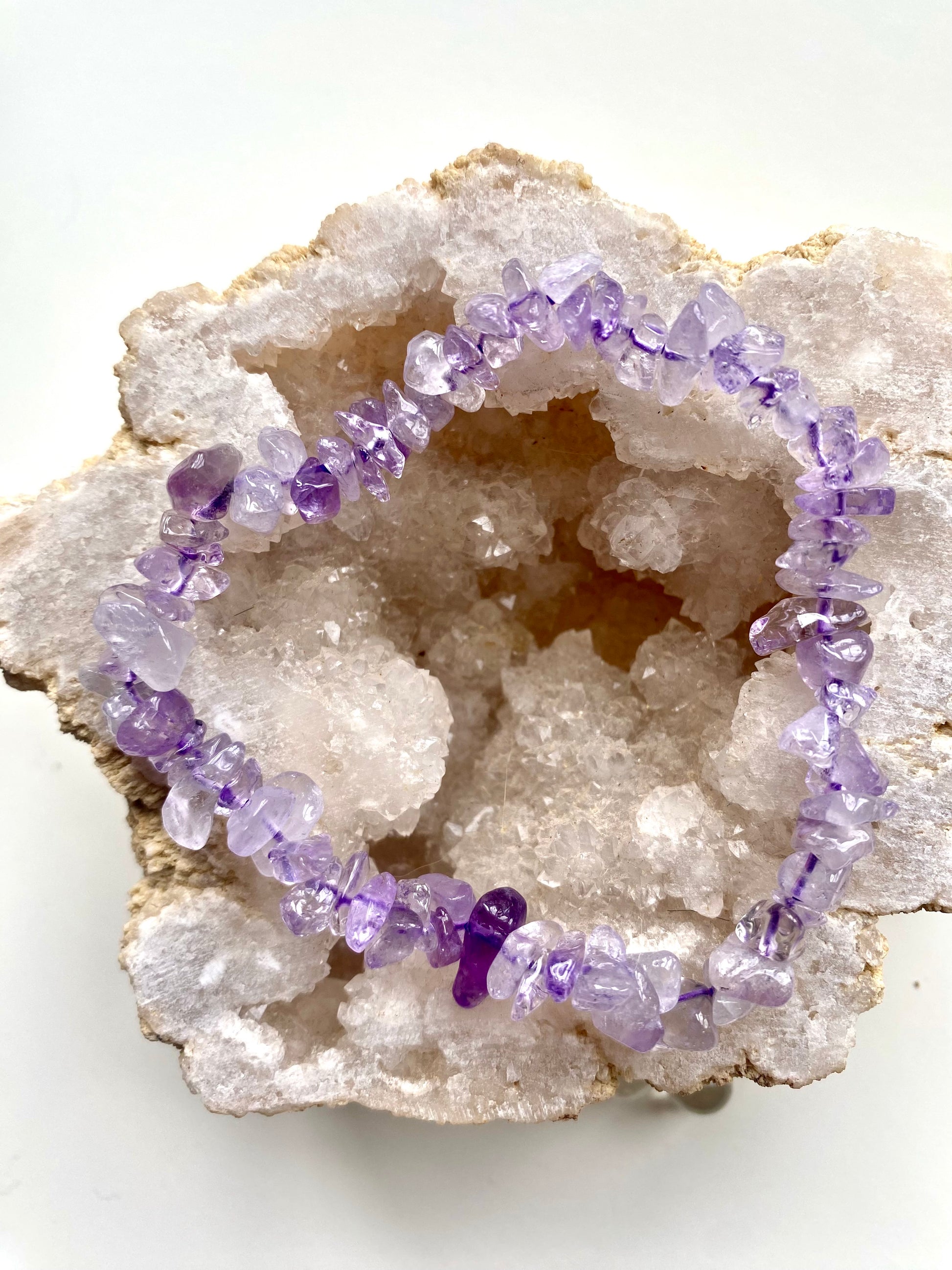 Lavender Amethyst Chip Crystal Healing Bracelets, are a gentle yet powerful tool for spiritual growth and emotional healing. Lavender Amethyst, with its soothing purple hues and calming energy, creates a serene sanctuary for relaxation and inner peace.